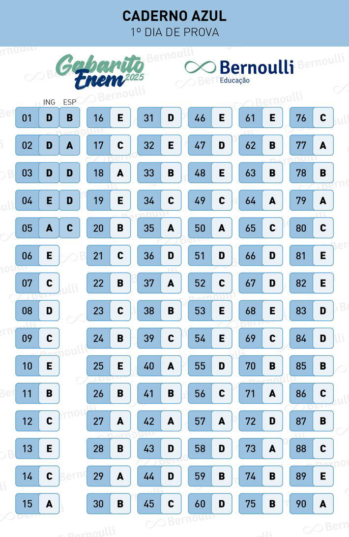 Gabarito Enem 2025: Prova Azul
